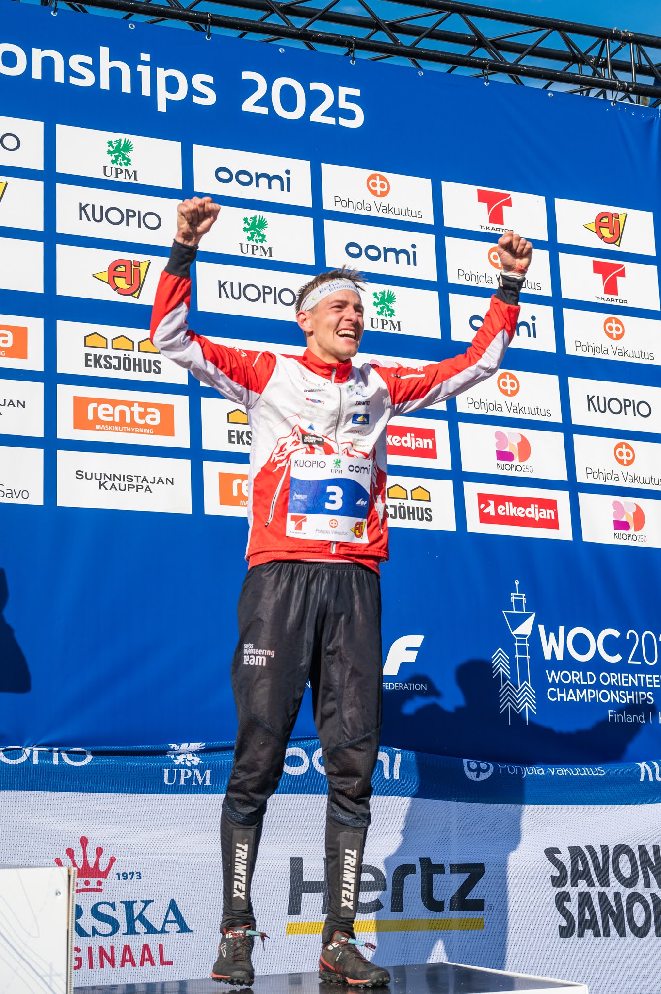 Matthias Kyburz läuft auf den dritten Rang und gewinnt damit die erste Schweizer WM-Medaille in Finnland bei den Herren. Nachdem er gestern Bronze noch um eine Sekunde verpasste, lag das Sekundenglück heute auf seiner Seite und so gewinnt er dank einem starken Schlussteil elf Sekunden vor Emil Svensk (SWE) die Bronzemedaille. Top-Favorit Kasper Harlem Fosser (NOR) verteidigt seinen Titel souverän und gewinnt mit 2:57 Min. Vorsprung vor Martin Regborn aus Schweden. «Diese Medaille bedeutet mir sehr viel, denn ich habe mich sehr intensiv auf diesen Wettkampf vorbereitet. In Skandinavien über die Langdistanz eine Medaille zu gewinnen ist extrem schön», so Kyburz. Martin Hubmann auf Rang 7 und Jonas Egger auf Rang 11 runden das starke Teamergebnis ab.