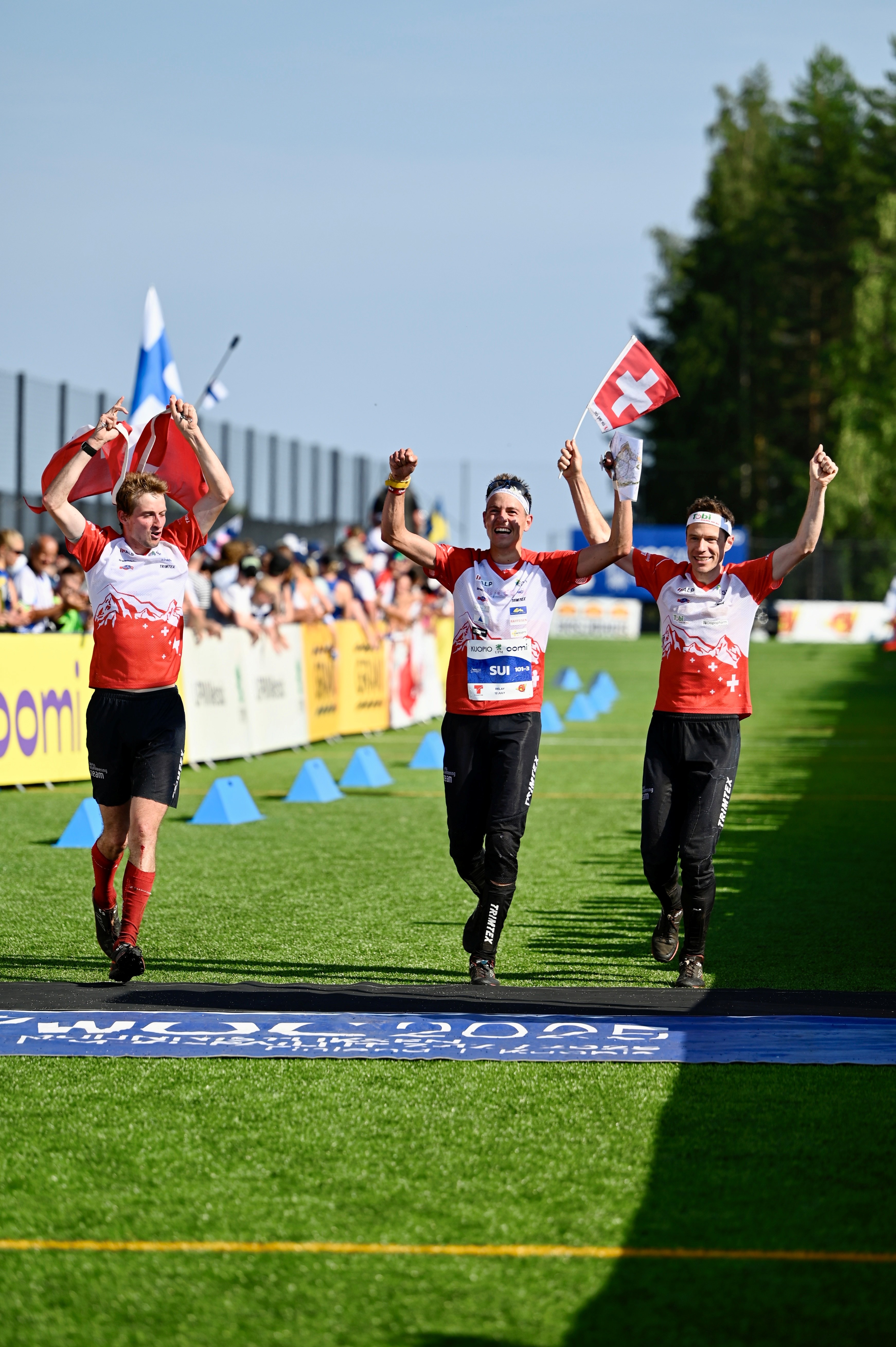 Kasper Harlem Fosser baut auf der Schlussstrecke den Vorsprung auf den Schweizer Matthias Kyburz aus. Kyburz zeigt dahinter einen technisch sauberen Lauf und läuft auf den sicheren zweiten Rang und sichert dem Schweizer Team Silber. Dramatisch endete der Kampf um Bronze. Lange Zeit liefern sich Finnland und Schweden ein Duell um den letzten Podestplatz. Während Schweden kurz vor dem Ziel einen Posten auslässt und in der Folge nicht klassiert wurde, hatte auch Finnland eine längere Suchaktion zu verbuchen und so kam es zum Zielspurt zwischen Frankreich und Finnland. Diesen entschied Miika Kirmula für das heimische Team und sichert dem Gastgeberland die erste Medaille dieser Titelkämpfe. Daniel Hubmann gewinnt damit seine bereits 30. WM-Medaille, für Matthias Kyburz ist es WM-Medaille Nummer 17. Fabian Aebersold gewinnt bei seinem WM-Debüt seine erste WM-Medaille.