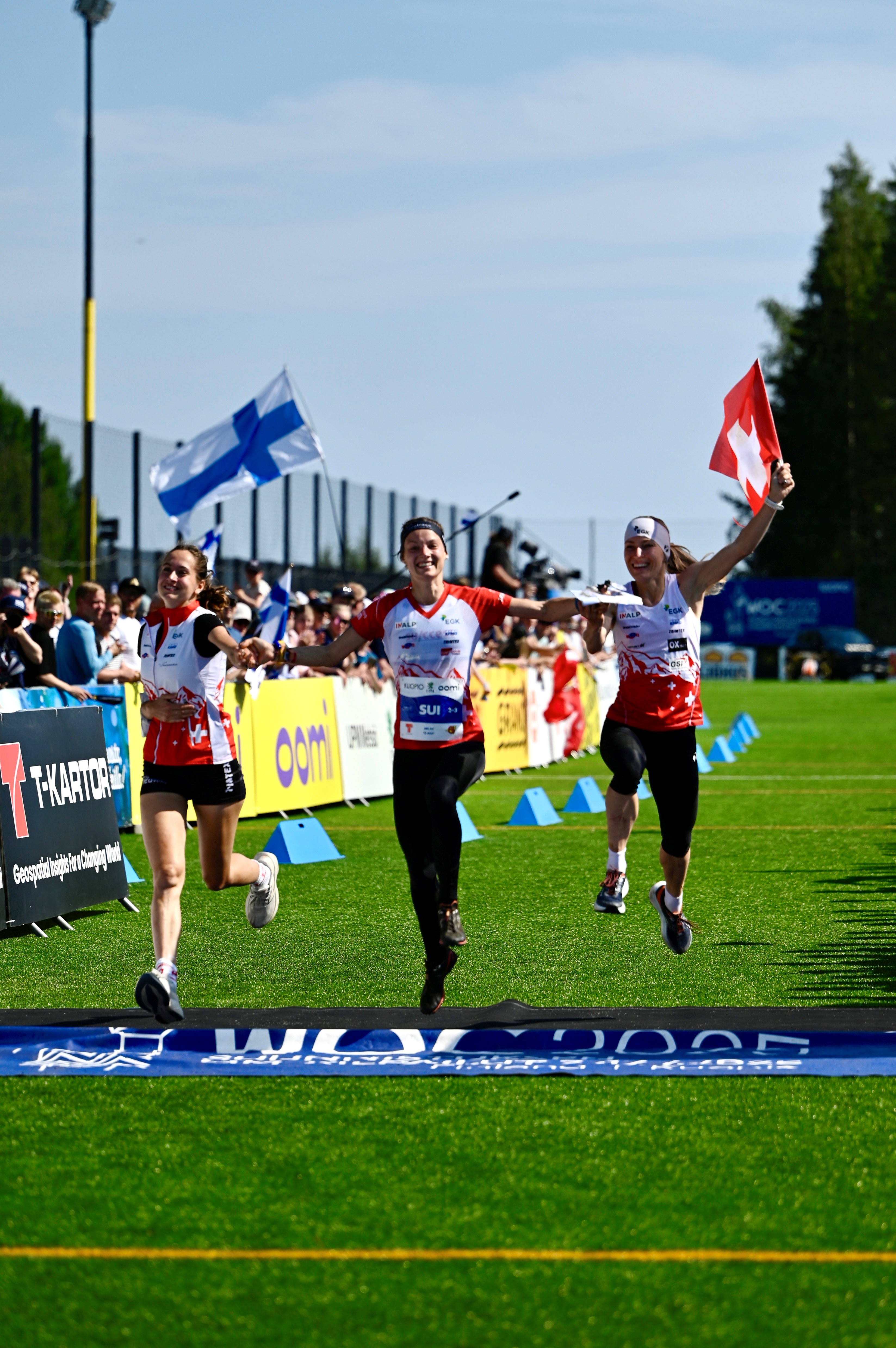 Simona Aebersold startete zur Aufholjagd, macht Zeit und Ränge gut und kann Tschechien und Finnland überholen und läuft auf Rang 3, rund 30 Sekunden hinter Norwegen. Ein Malheur beim Überlauf, als sie fälschlicherweise die Karte wegwirft, kostete zwar etwas Zeit, doch dank einem ansonsten starken Lauf gewinnen die Schweizerinnen am Ende ungefährdet die Bronzemedaille. «Ich habe nicht gross an das Resultat gedacht und mich einfach auf meinen Lauf fokussiert, damit ich technisch sauber durchkomme und wir mit einem positiven Gefühl die WM beenden können, das ist mir gut gelungen», freut sich Aebersold. Schweden läuft währenddessen überlegen zum Sieg und verteidigt den WM-Titel damit souverän. Norwegen gewinnt Silber.
