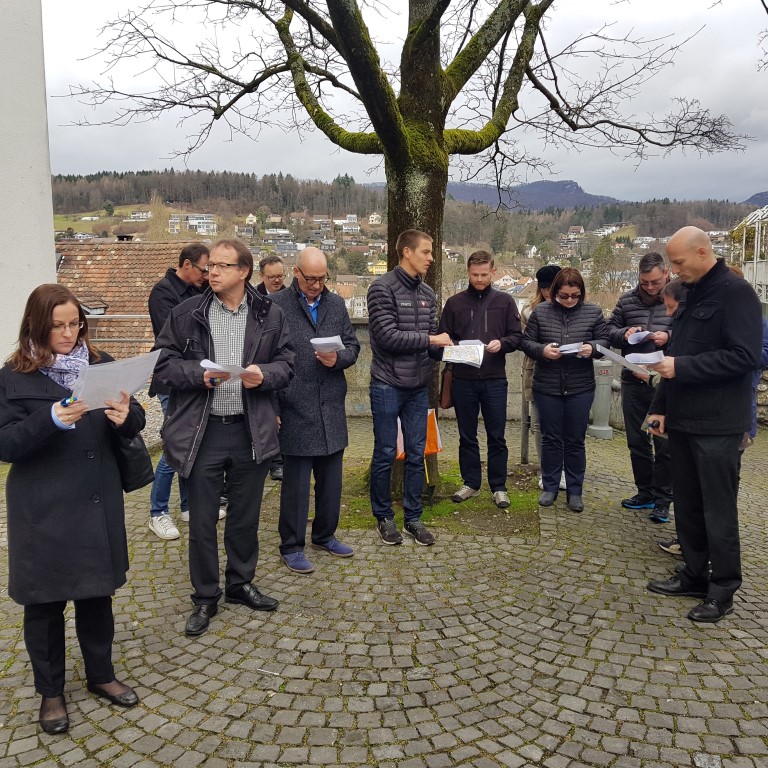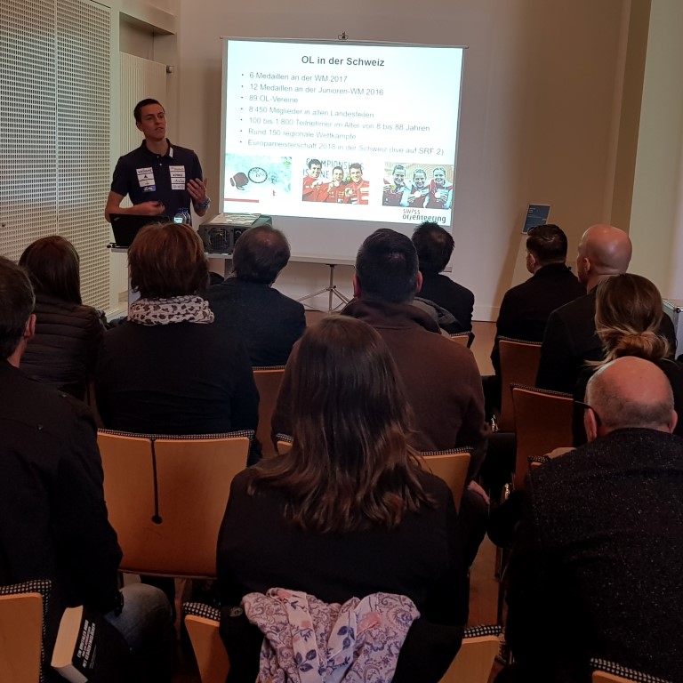 Après une courte présentation de son quotidien sportif et les challenges au niveau du mental, « Bouger intelligemment » était le thème de la journée : les 15 participants se sont rendus badge et carte en main ainsi qu’équipés de GPS dans la vielle ville après avoir eu petit aperçu en regardant la transmission en live de la SRF de 2016. « Cela a donné un côté très attrayant à la journée, nous avons pu se déplacer au grand air et c’était très impressionnant de voir tout ce qu’on a vraiment besoin pour faire une bonne CO et aussi de voir tout ce que l’on peut en retirer pour notre quotidien », a livré Bernhard Lehmann, chef Management Services de Postmail. Stefan Graber de Postmail, et ayant organisé la journée, a résumé : « Matthias Kyburz a su amener le thème de la course d’orientation de manière très sympathique et intéressante. Les participants ont été enchantés de découvrir ce sport ». Matthias Kyburz a également félicité les participants : « Ils ont été très actifs et intéressés. Je crois qu’ils ont aussi apprécié la répartition du temps entre la présentation et la partie active à faire de la CO ».