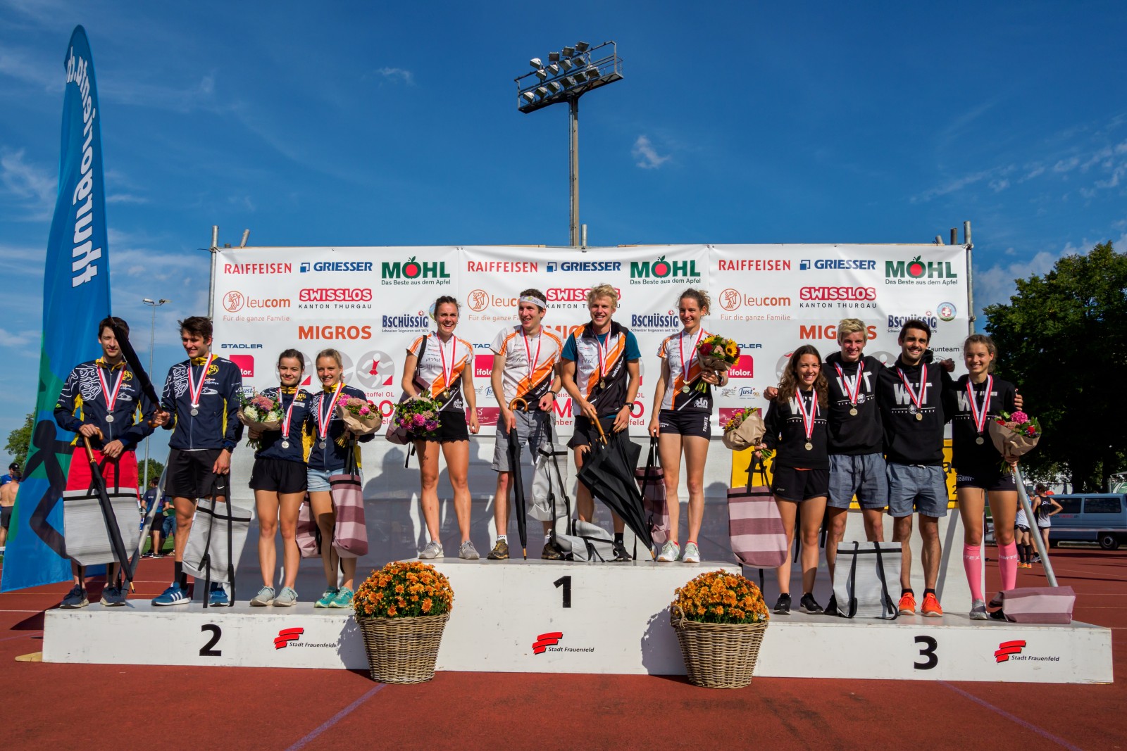 Aujourd'hui à Frauenfeld, les titres de championne suisse de relais sprint ont été décernés. Dans cinq catégories, les équipes, composées chacune de deux femmes et de deux hommes, ont couru dans des zones variées, telles que des installations sportives, des zones résidentielles avec des passages étroits ou le parc Murg-Auen avec ses petits sentiers et ses ponts.