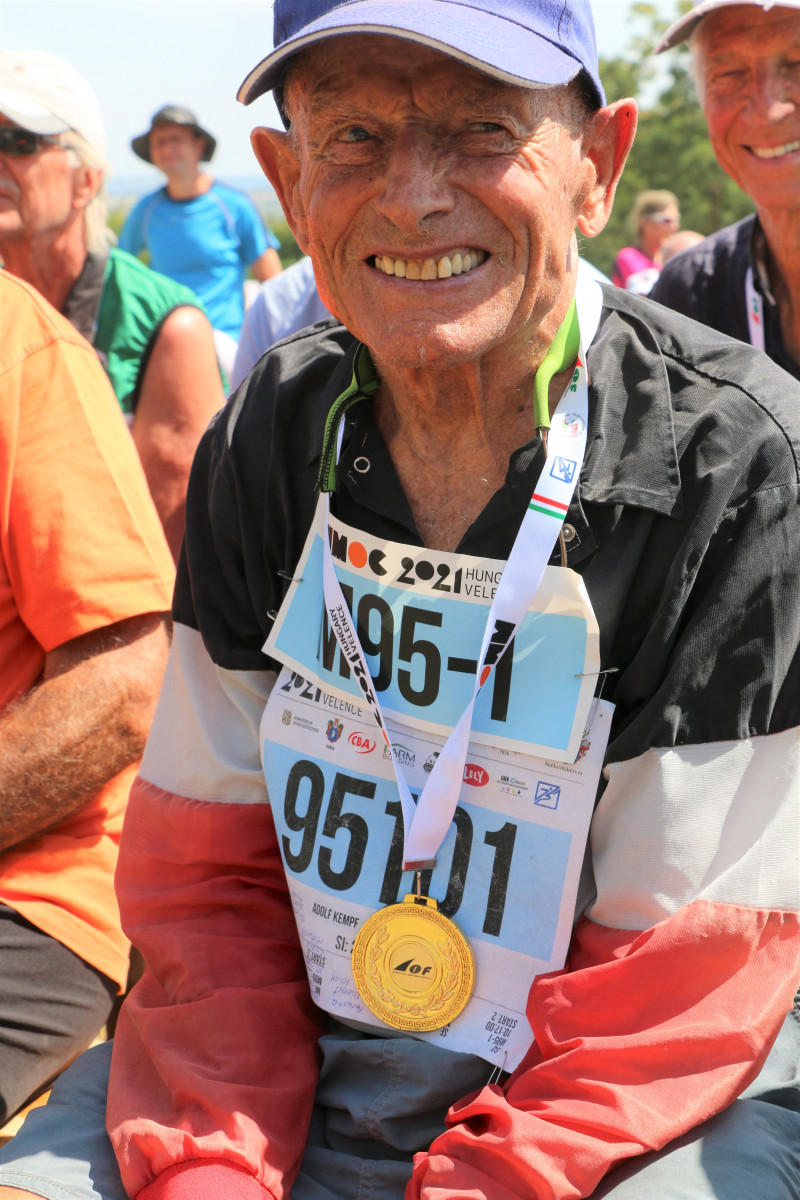 C’est ce que Adolf Kempf a répondu à la question de comment s’est passé sa course. « Pas si bien », a-t-il ajouté. La première réponse fut le cas pour tous les coureurs. Beaucoup pourraient citer aussi la seconde. Il y avait le choix entre des itinéraires très longs et des choix de cheminements directs. Dans la zone de postes, la concentration la plus intense était requise. Le danger d'erreurs était omniprésent. Eric Bucher (M80) a également vécu des émotions en dents de scie. Il n'était qu'en 7ème position 7 minutes avant la ligne d'arrivée, mais il a pu remonter jusqu'à la 3ème place. Ainsi, après deux médailles d'or, il a également remporté une médaille de bronze et est, avec Adolf Kempf, le Suisse le plus titré des Championnats du monde seniors de cette année.