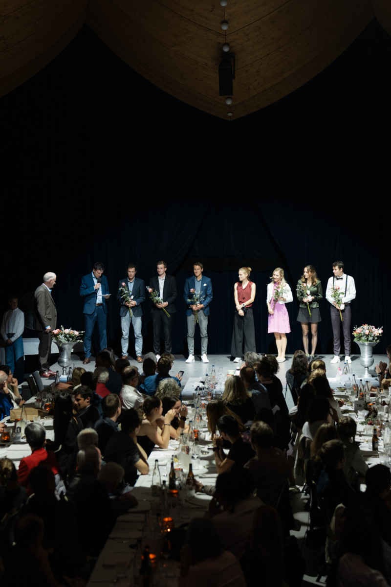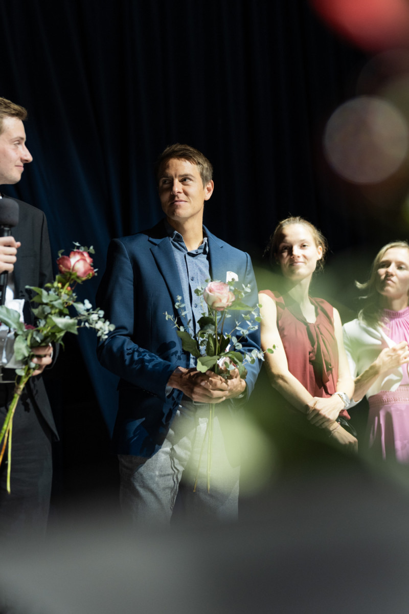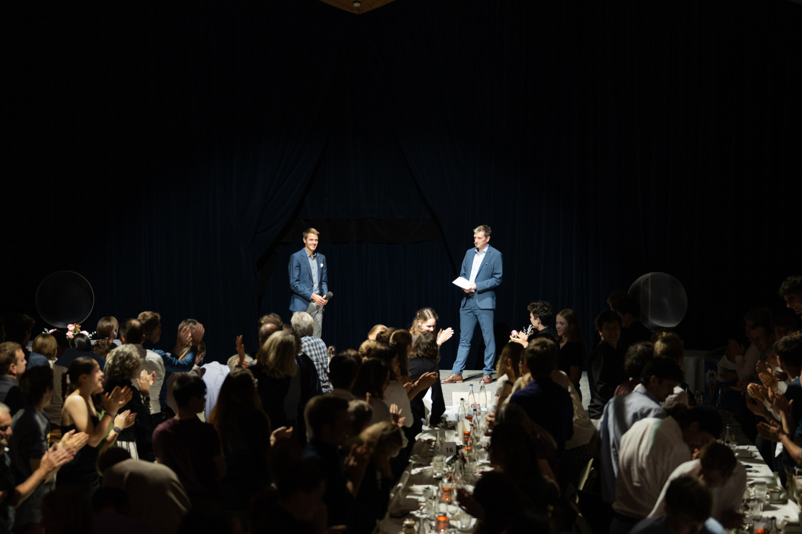 Après un début de soirée sportif et animalier, les portes du chapeau magique se sont ouvertes. Des tables joliment dressées et des lumières scintillantes attendaient les invités de la Swiss O-Fest. Un lieu tout à fait digne pour honorer les nombreuses performances exceptionnelles de cette année : du sport de masse aux succès des jeunes talents en passant par les médailles internationales d'élite. La soirée a été animée par Beat Liechti, tandis que Raphibello et Talpa Hill ont assuré l'animation musicale. Un moment particulier de la soirée a été le départ de Matthias Kyburz. De petits panneaux indiquant le nombre de kilomètres ont accompagné les invités de la fête tout au long de la soirée, jusqu'à ce que Matthias Kyburz soit finalement invité à monter sur scène au kilomètre 42. C'est avec un œil qui rit et un œil qui pleure que la communauté des coureurs d'orientation a fait ses adieux à « Chlai » et l'a remercié par une ovation debout pour toutes les belles émotions qu'elle a pu vivre avec lui.