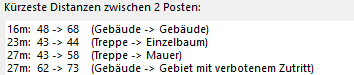 Dans le cas du sprint, il faut veiller à respecter la distance minimale entre deux postes. L'art. 118bis du règlement définit les distances pour la course d'orientation sprint :
