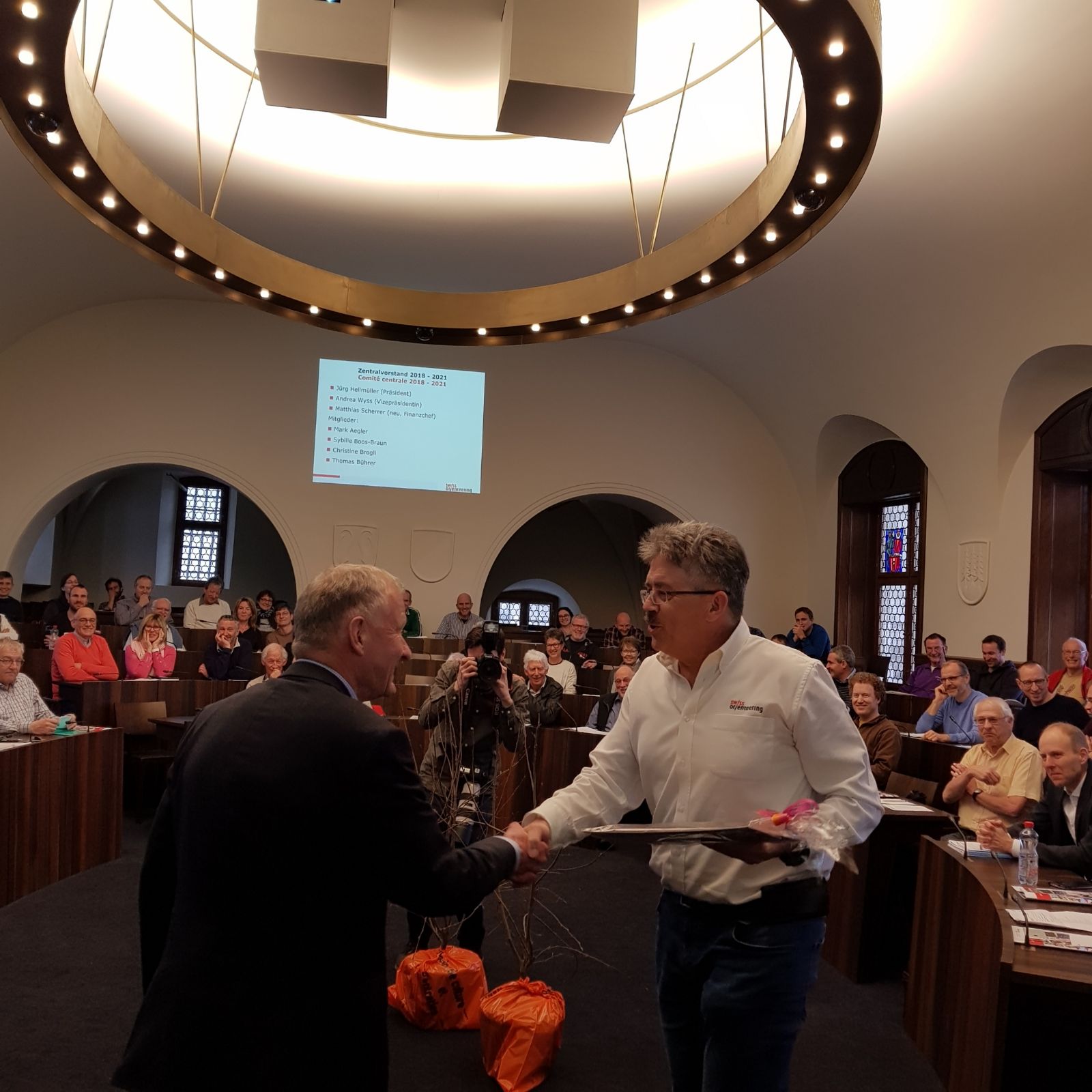 Tutto il comitato centrale così come gli atlri funzionari sono stati nuovamente scelti e Matthias Scherrer è stato scelto come successore di Hansjörg Graf all'unanimità come nuovo campo finanze. Hansjörg Graf o „Housi" – come è stato chiamato nella lauda di Sönke Bandixen - ha ricevuto il titolo di socio onorario per il suo grande impegno durante circa 40 anni per la CO. L'ultima votazione nella tradizionale fortezza carnevalesca di Soletta è stato deciso che l'assemblea 2019 si svolgerà il 2 marzo 2019.