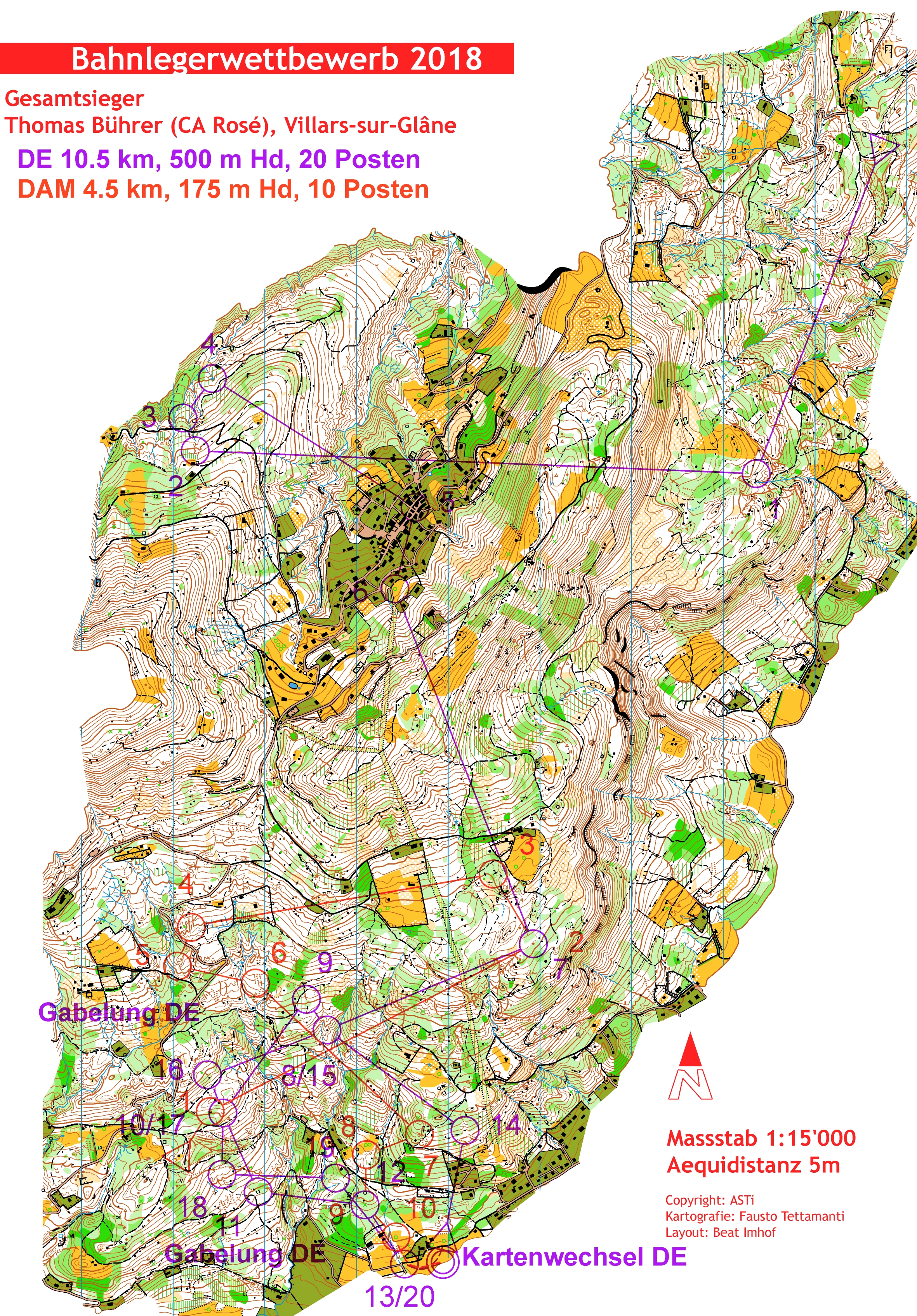 Thomas Bührer erreichte mit seinen abwechslungsreichen Bahnen und den gestellten Routenwahlproblemen den ersten Rang. Ebenfalls ist das Gabelungssystem ab Posten 8 gelungen. Es gibt genug Variationen um gemeinsam laufende Läuferinnen zu trennen. Die Bahn verliert zwar durch so viele Posten etwas den Charakter einer Langdistanzbahn, weist aber auch auf diesen kürzeren Teilstrecken noch Routenwahlen auf.