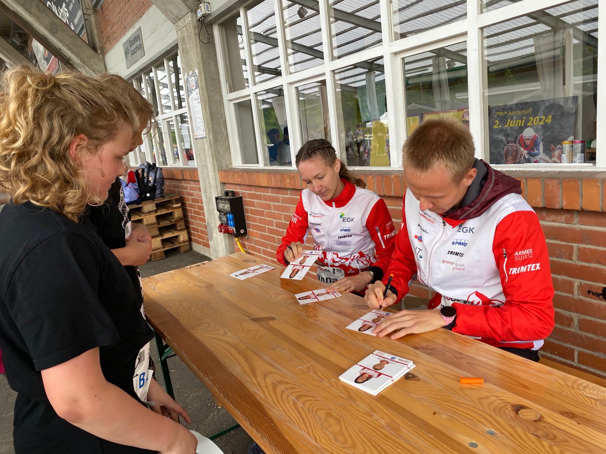 L'associazione di C.O. argoviese ha organizzato su incarico dell’ufficio dello sport cantonale BKS con Eva Martin come capo gara e, alla sera, ha potuto trarre una conclusione assolutamente positiva della giornata! Era felice che il più grande evento sportivo scolastico del Cantone si fosse concluso con molti volti raggianti di alunni, insegnanti e aiutanti. Il fatto che questa volta non ci sia stato il sole non ha avuto molta importanza: almeno è rimasto asciutto per tutta la durata dell'evento, così che, oltre alla corsa d’orientamento, si sono potuti fare anche i picnic di classe sui prati. Anche se molti alunni non sono riusciti a finire senza cercare, si sono visti volti felici e soddisfatti. Perché la C.O. non è certo uno sport facile! Non vale la pena di andare sempre a tutto gas! C'è poi la lettura della carta, che va affrontata con calma, magari da fermi. Due persone che hanno sicuramente imparato la O e la C sono gli atleti della nazionale Timo Suter e Sanna Hotz. Hanno pazientemente distribuito autografi agli alunni prima e dopo le loro gare.
